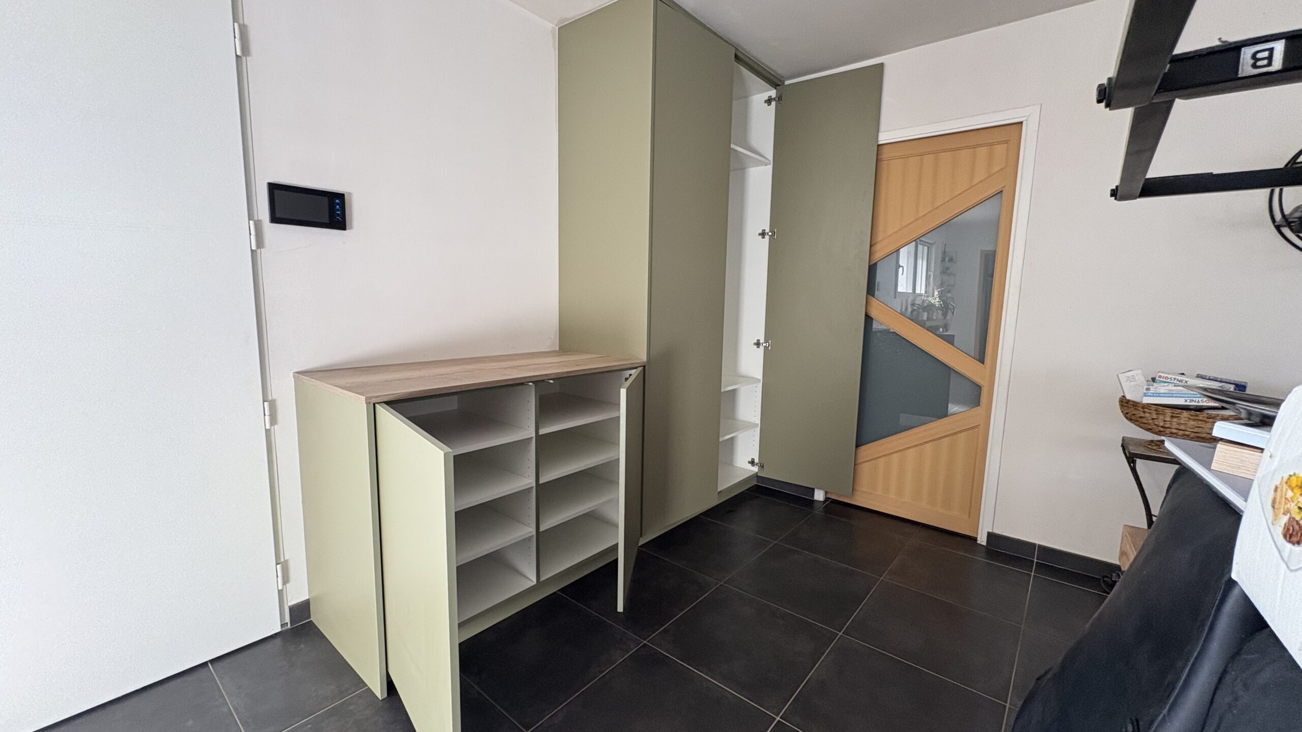 Grâce à cet agencement, l’entrée devient un espace à la fois esthétique et parfaitement organisé. Le rangement est optimisé, le passage fluide, et l’ensemble s’intègre sans surcharge visuelle.